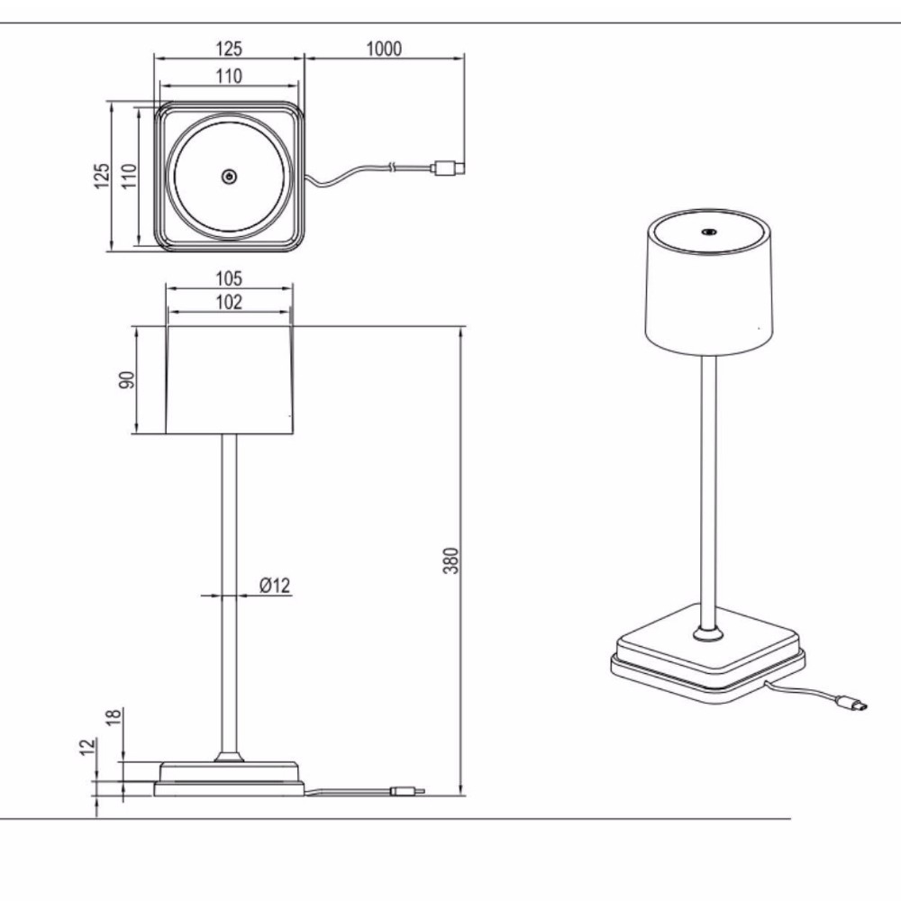 Lampada da tavolo nera portatile senza fili per esterno moderna