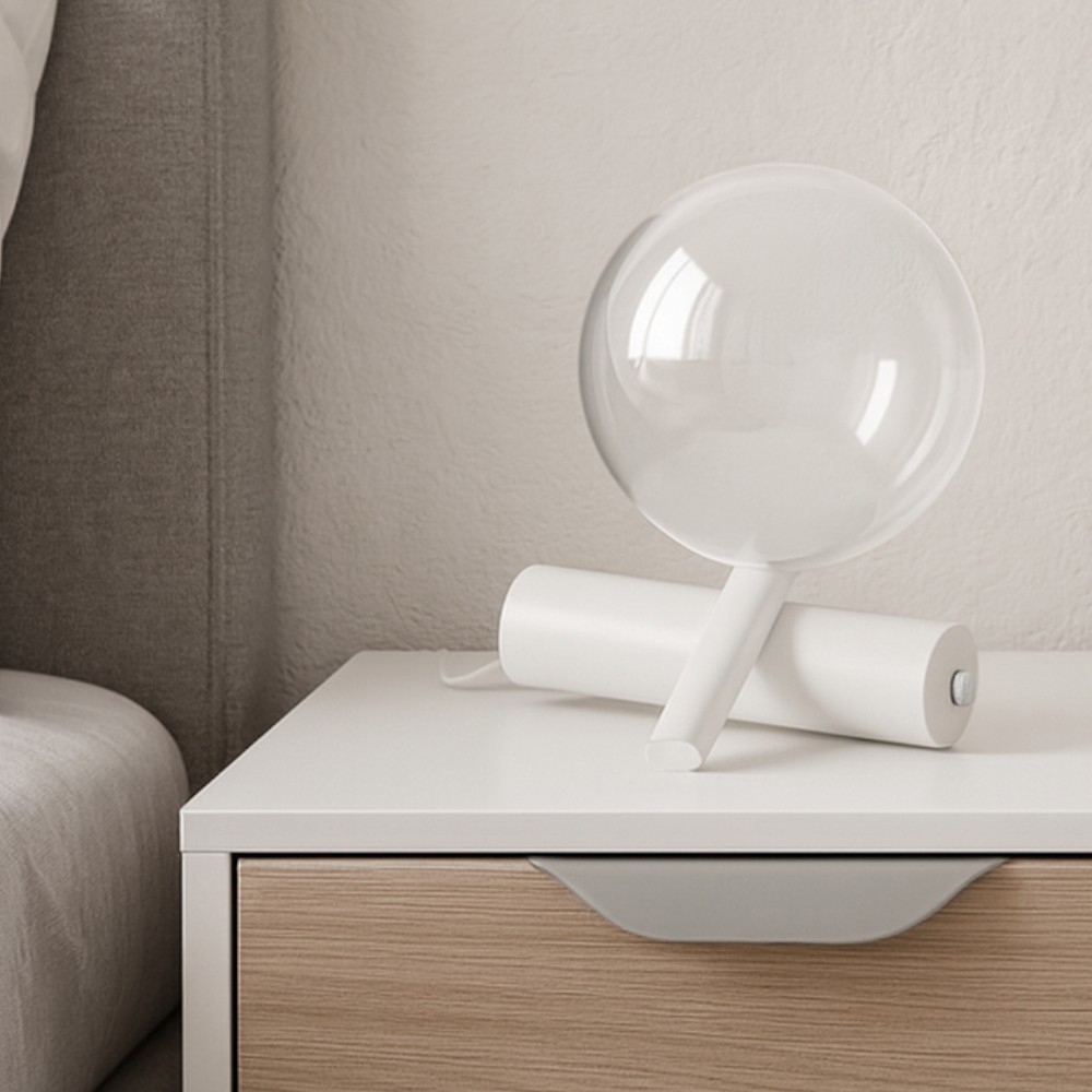 Candy tl1 d25 lampada da comodino sfera di vetro bianca ideal lux
