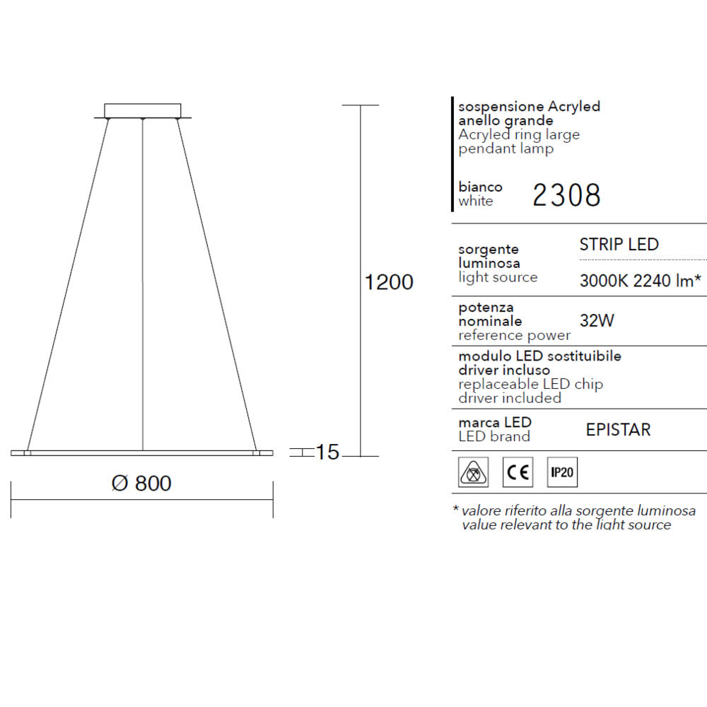 Affralux acryled lampadario led modello doppio anello 36w 3000k