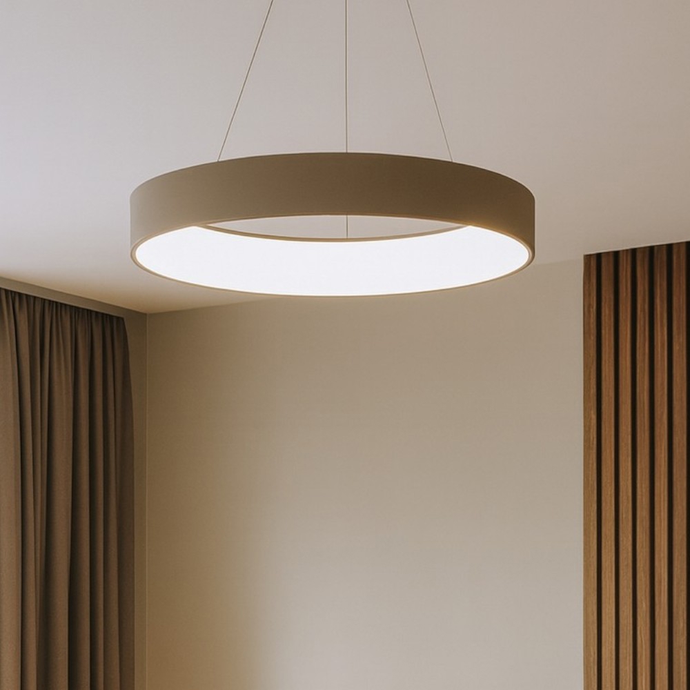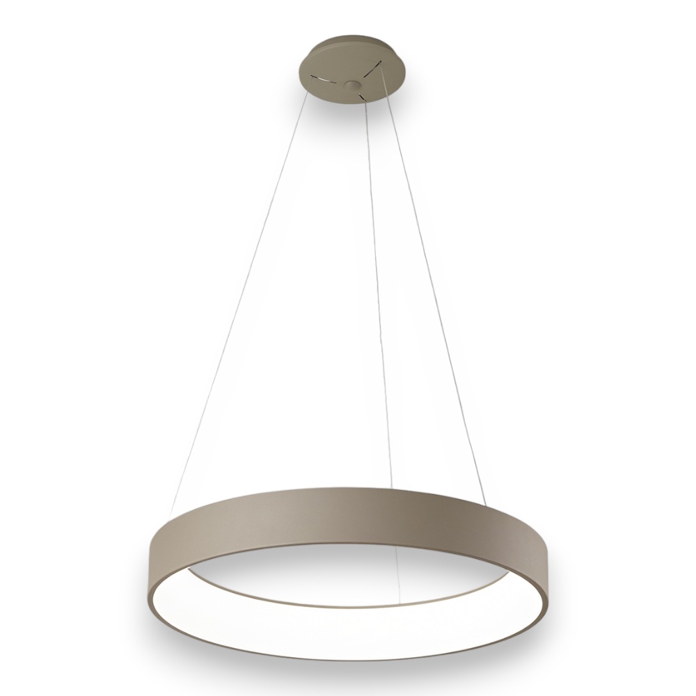 Buongiorno, in base alla sua richiesta occorre tenere in considerazione 2 fattori: dimensione del lampadario per un fattore estetico/proporzione con la stanza e potenza di illuminazione. Per i dati che ci fornisce potrebbe anche inserire n° 2 dimensioni da 60 cm ecco il link: https://www.mazzolaluce.com/lampadario-moderno-led-35w-tondo-60cm-sabbia-band-diodi-affralux-3200k ma per creare una differenza tra i due ambienti ed essendo sospensioni dallo spessore " ridotto " per il soggiorno le consiglio il modello da 80 cm https://www.mazzolaluce.com/affralux-band-diodi-lampadario-80cm-led-80w-3200k-anello-sabbia-moderno . Per maggiori info può rivolgersi in chat sul sito durante gli orari di ufficio o telefonare.