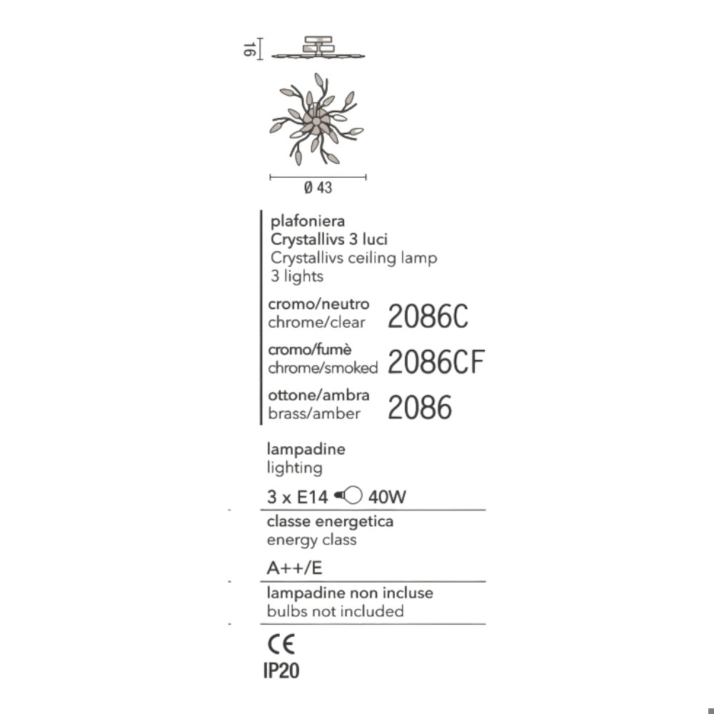- MATERIALE: METALLO, CRISTALLI MOLATI FUMÈ