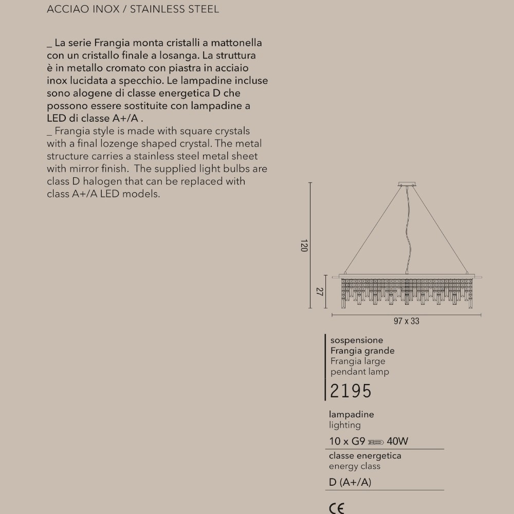 Ondaluce so batita lampadario di cristallo 87cm losanghe