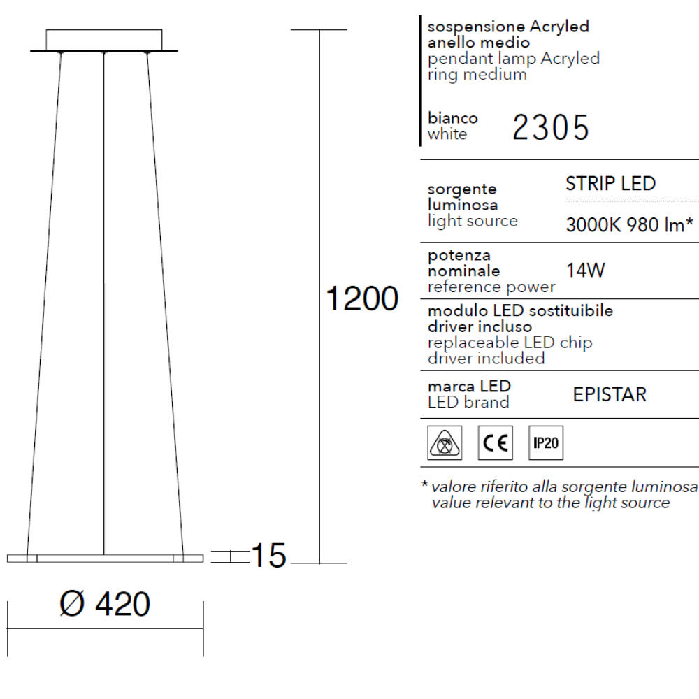 Affralux acryled lampadario led modello doppio anello 36w 3000k