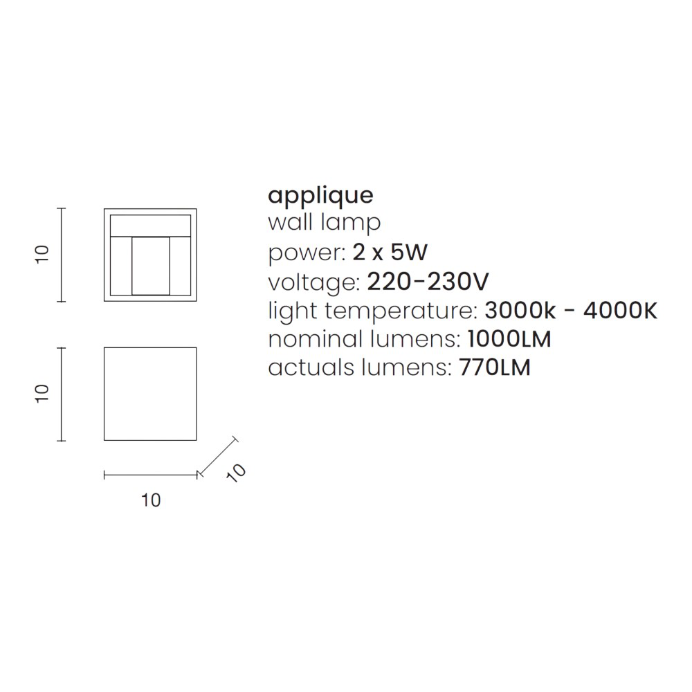 Cube ap d30 ideal lux applique led 8w 3000k bianca 30cm