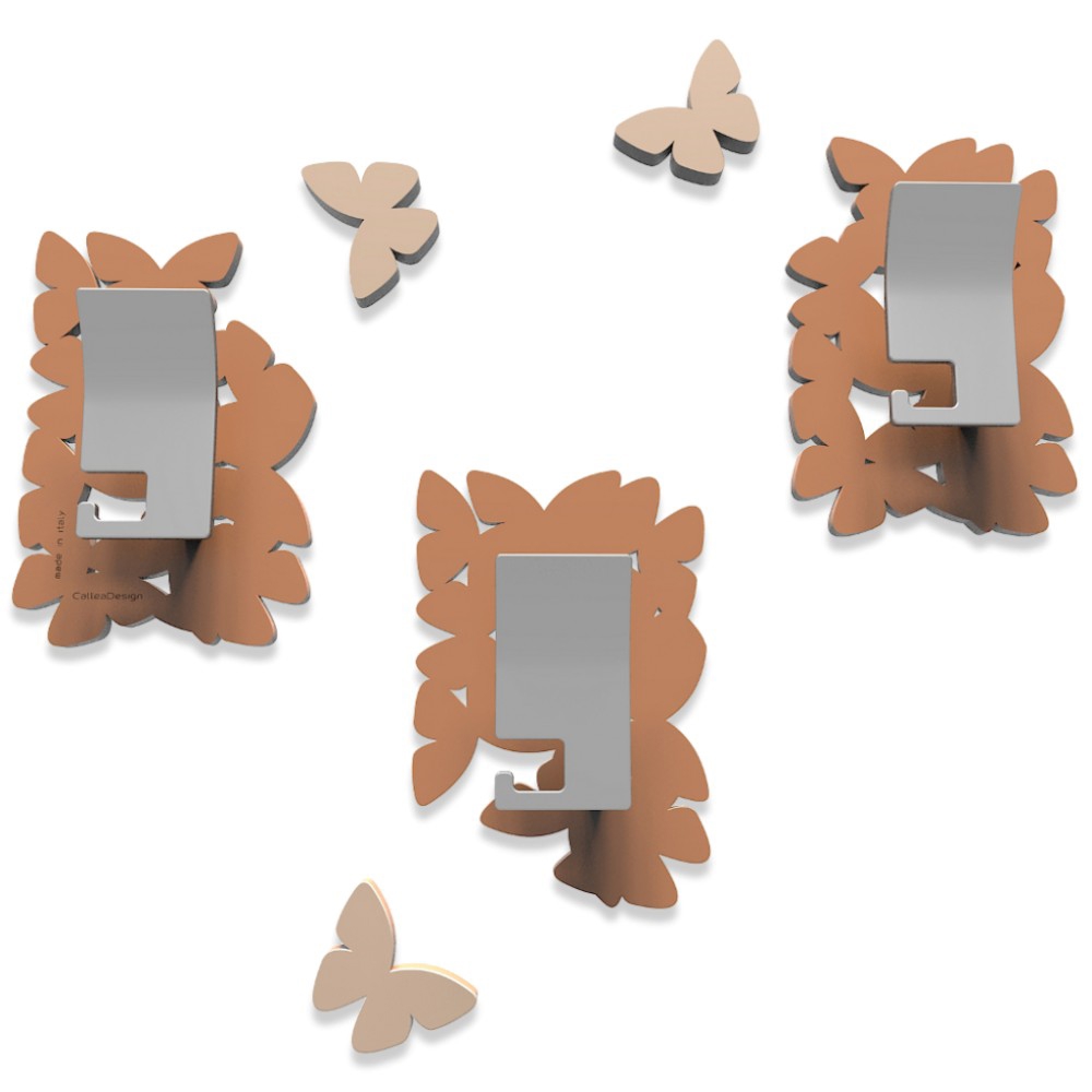 Appendiabiti da parete per cameretta farfalle legno colore rosa nuvola