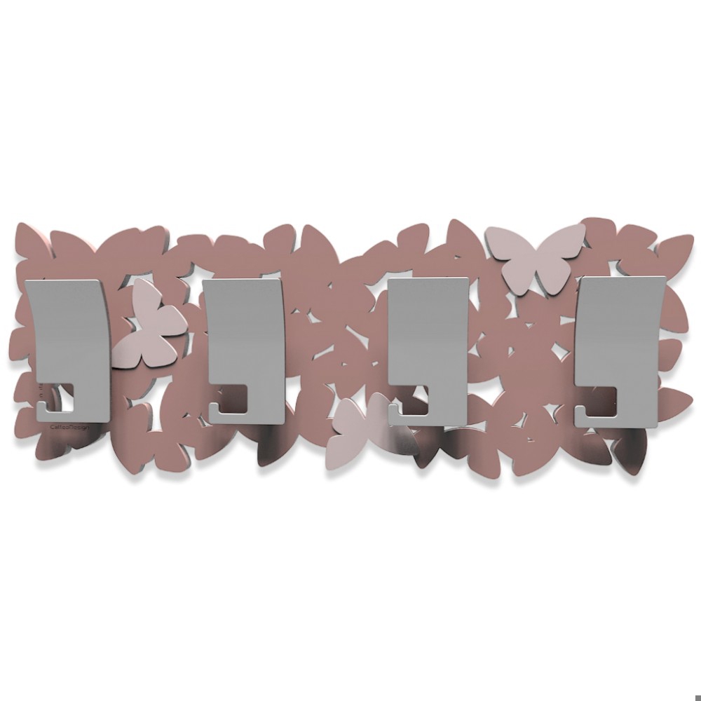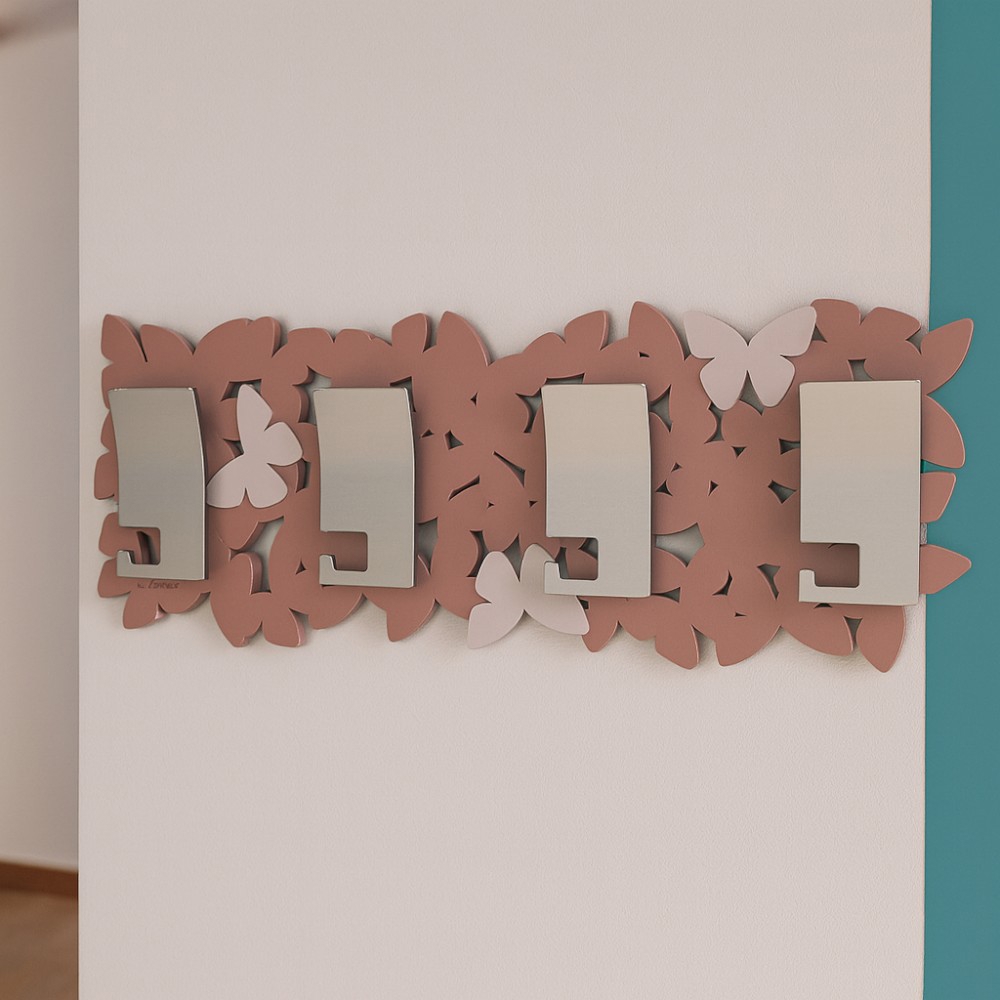 Attaccapanni da muro moderno farfalle legno rosso rubino e grigio