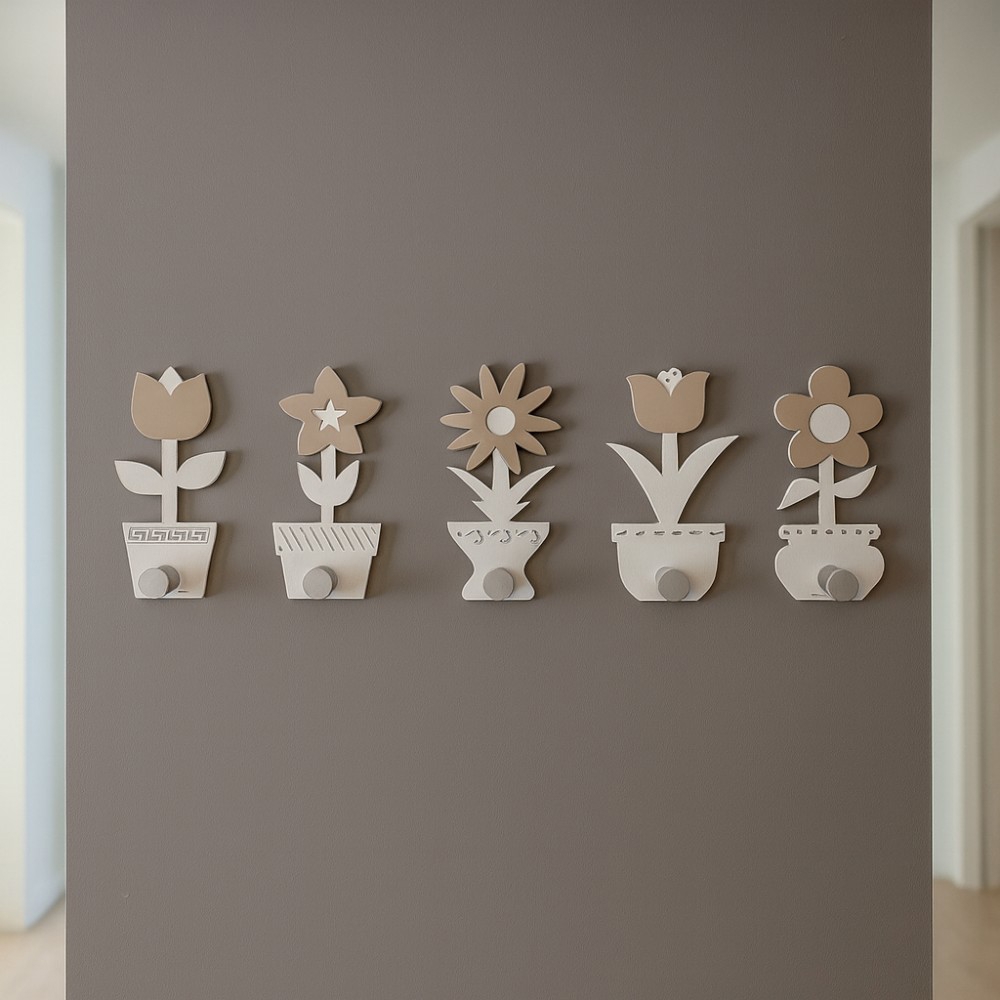 Appendiabiti da parete moderno piantine legno rosa conchiglia