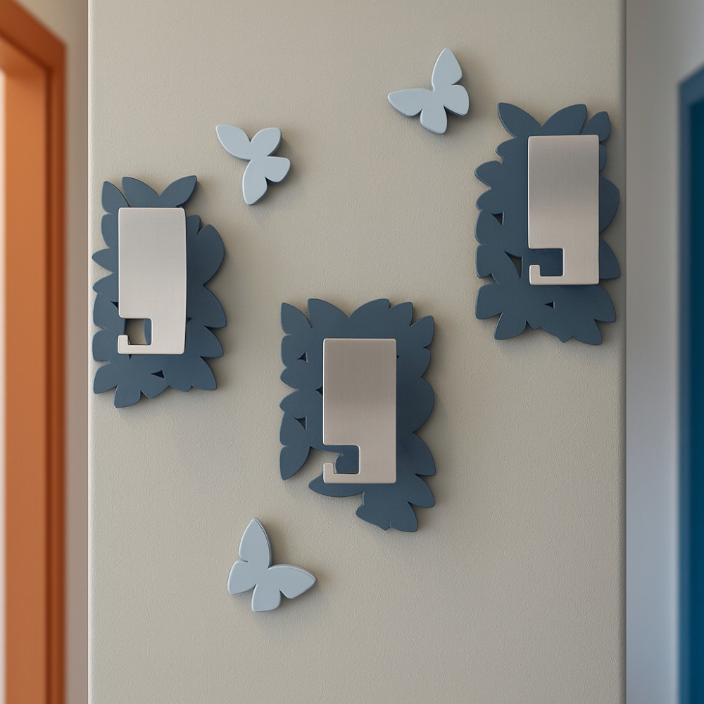 Elegante e moderno, questo appendiabiti da parete con tre pannelli traforati a laser è caratterizzato da un raffinato tema farfalle nei toni del carta da zucchero. Realizzato in fibra di legno MDF verniciato, offre un design originale e versatile: i pannelli possono essere distanziati tra loro sulla parete per un effetto decorativo personalizzato. Le farfalle in volo, dotate di biadesivo, possono essere posizionate a piacimento per completare la composizione. I tre appendini in metallo garantiscono robustezza e funzionalità, perfetti per appendere abiti, borse o accessori. Ideale per ingressi, soggiorni o camere da letto, è un prodotto interamente realizzato in Italia con materiali di alta qualità e imballato con cura per un trasporto sicuro. Disponibile in diverse colorazioni e personalizzabile su richiesta con variazione di prezzo.