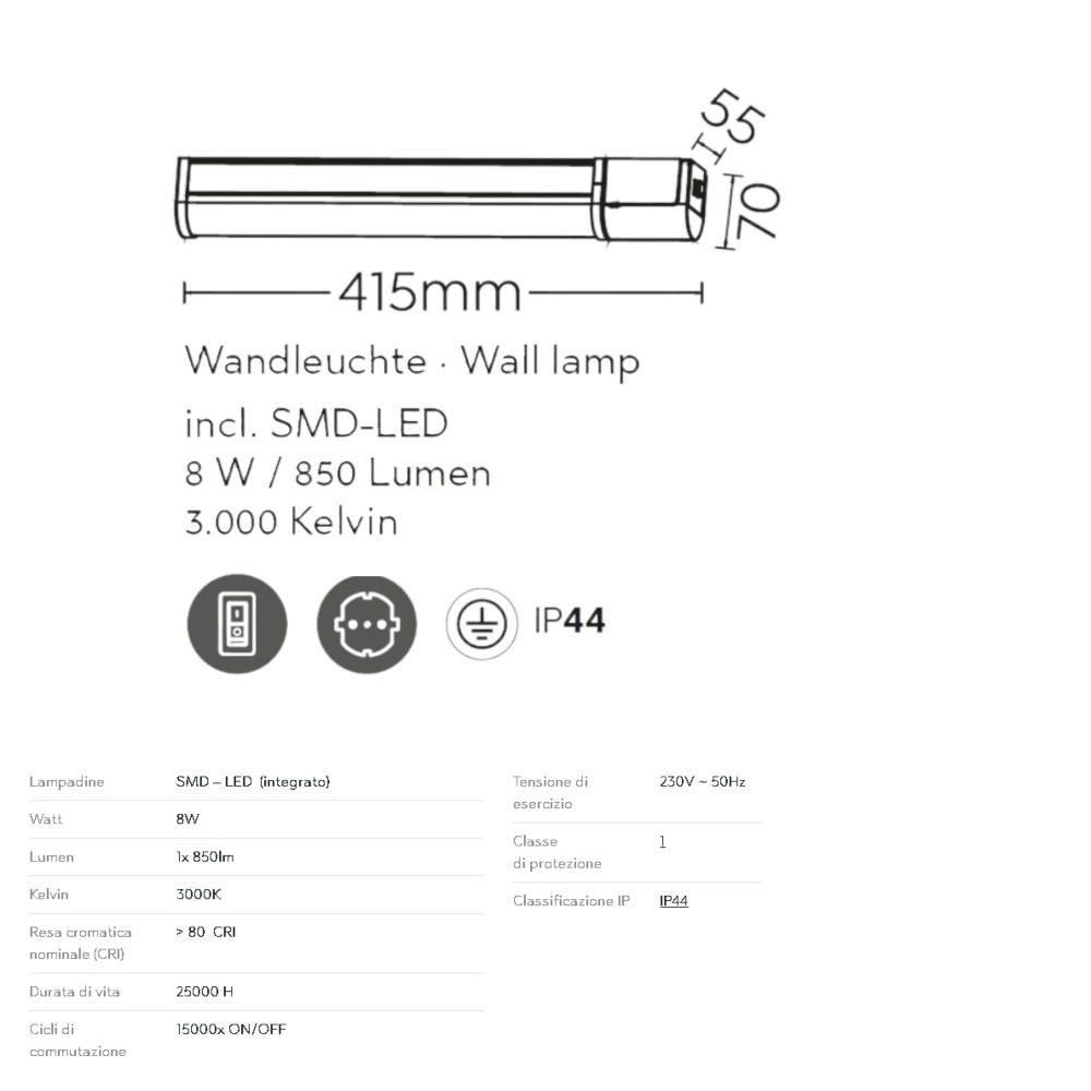 Eglo tragacete 1 applique da bagno moderno per specchio led 4000k ip44