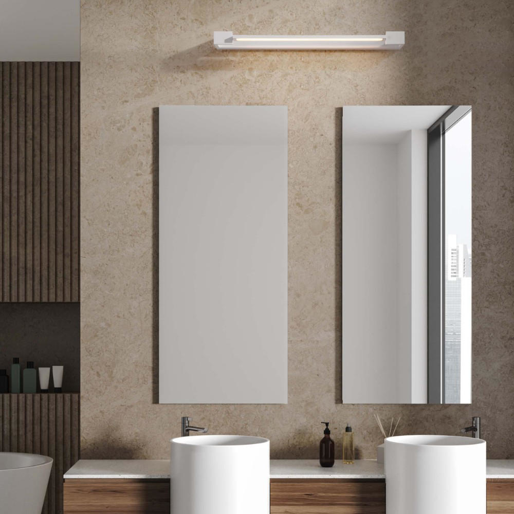 Grazie alla protezione IP44, questa applique è resistente all’umidità e agli spruzzi d’acqua, garantendo affidabilità e durata nel tempo. La sorgente luminosa LED integrata da 17W emette una luce calda a 3000K, diffondendo 1400 lumen in modo uniforme e senza ombre, per un'illuminazione chiara e precisa. Perfetta per specchi e zone funzionali del bagno, questa applique è progettata per offrire efficienza energetica e una luce accogliente.