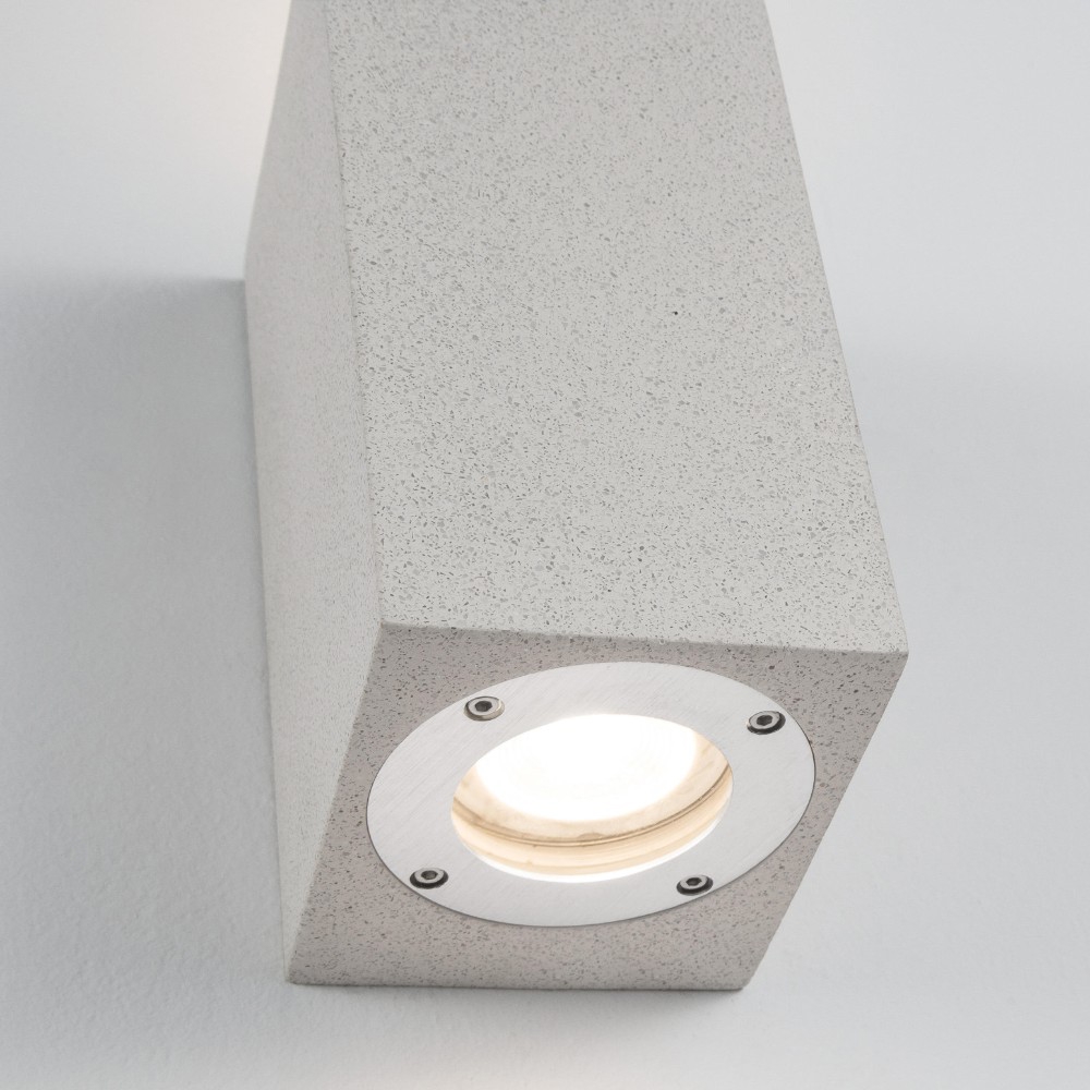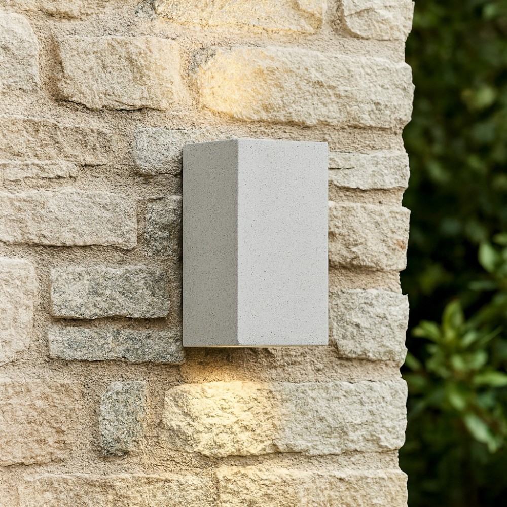 L'applique da esterno per illuminazione esterna, con la sua forma squadrata in cemento bianco simile all'arenaria, è la scelta perfetta per chi cerca un'illuminazione robusta e funzionale per gli spazi esterni. La sua struttura in cemento conferisce solidità e una resistenza superiore agli agenti atmosferici, garantendo un prodotto durevole e di alta qualità. Dotata di due portalampada per lampadine GU10 LED intercambiabili, permette di personalizzare l'illuminazione in base alla potenza e al colore desiderato, creando effetti luminosi adattabili alle diverse esigenze. L'applique è progettata per illuminare sia verso l'alto che verso il basso, offrendo un'illuminazione uniforme che può essere estesa su pareti o superfici. Grazie alla protezione IP65, resiste alla polvere e all’acqua, rendendola ideale per ambienti esterni come giardini, terrazzi o ingressi. Con un design semplice ma di grande impatto visivo, può essere montata in sequenza per ottenere un effetto scenografico che impreziosisce qualsiasi spazio esterno.