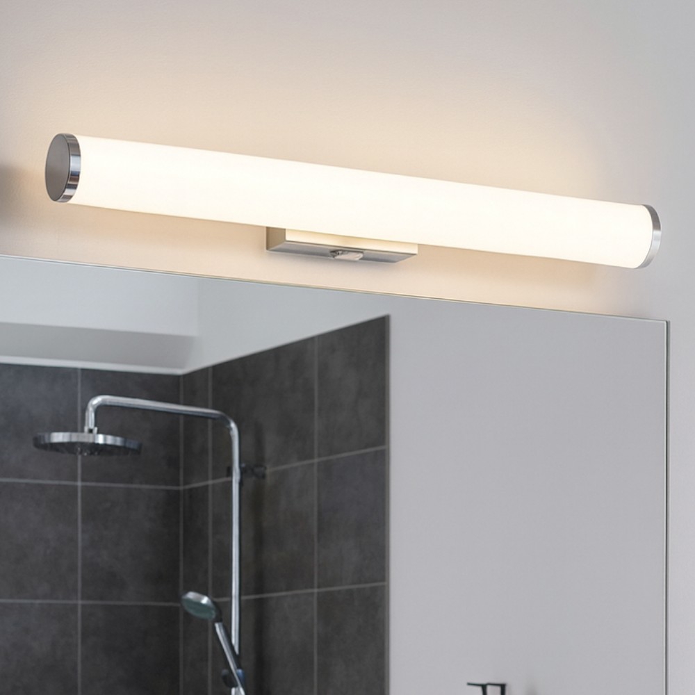 Questa applique da bagno, compatta ma sofisticata, si inserisce con naturalezza negli spazi moderni, garantendo una luce calda e avvolgente. Con i suoi 40 cm di lunghezza, rappresenta una scelta perfetta per chi desidera un'illuminazione mirata senza rinunciare allo stile. Il corpo in metallo cromato abbinato al diffusore in plastica bianca contribuisce a creare un effetto luminoso morbido e uniforme. La sorgente LED SMD integrata da 4,3W, con temperatura colore di 3000K, diffonde una luce calda ideale per rendere l’ambiente bagno più accogliente. Il grado di protezione IP44 consente l’installazione anche in prossimità di zone soggette a umidità, come la parete sopra lo specchio.
