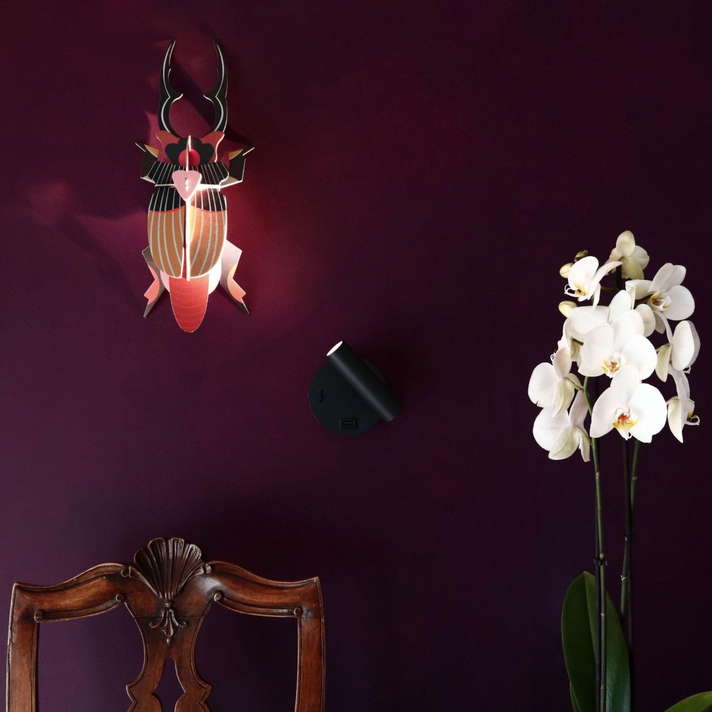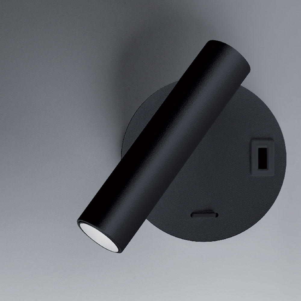 Applique camera da letto multifunzione led 3w 3000k usb nero luce orientabile