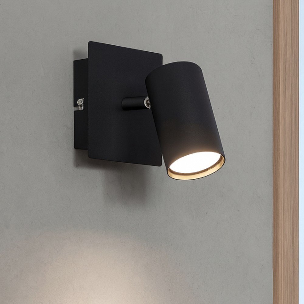 Applique da parete dal design moderno ed essenziale, realizzata in metallo con elegante finitura nera opaca. Il corpo cilindrico orientabile permette di regolare con precisione la direzione della luce, risultando ideale per un'illuminazione mirata in spazi come corridoi, cucine, ingressi o ambienti studio. Grazie alla sua struttura compatta e versatile, si adatta sia a montaggi a parete che a soffitto, offrendo massima libertà progettuale. Lo stile sobrio e professionale si sposa perfettamente con ambienti minimalisti. È compatibile con lampadine GU10 fino a 25W, e si consiglia l'uso di sorgenti LED per una maggiore efficienza energetica e durabilità. Soluzione d'arredo funzionale che unisce estetica e praticità in un'unica struttura.