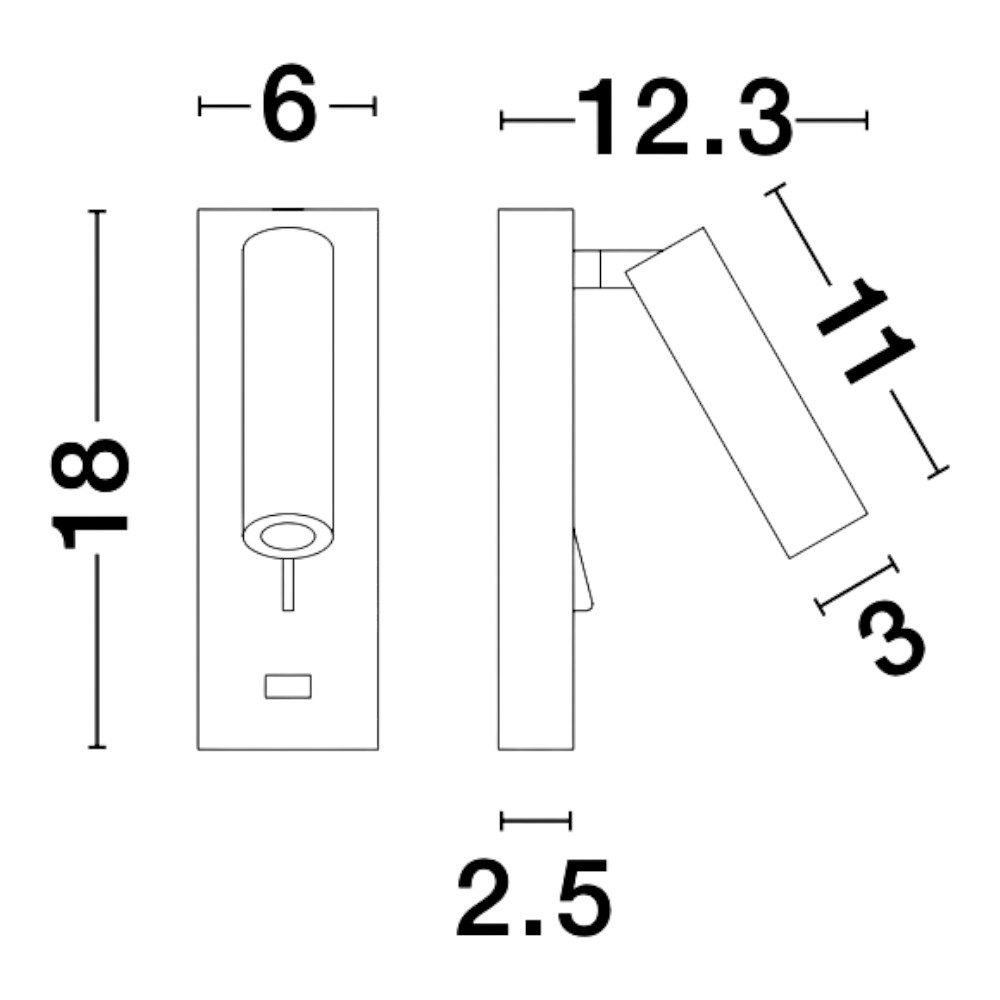 Applique bianco per comodino 3w 2700k luce orientabile con interruttore