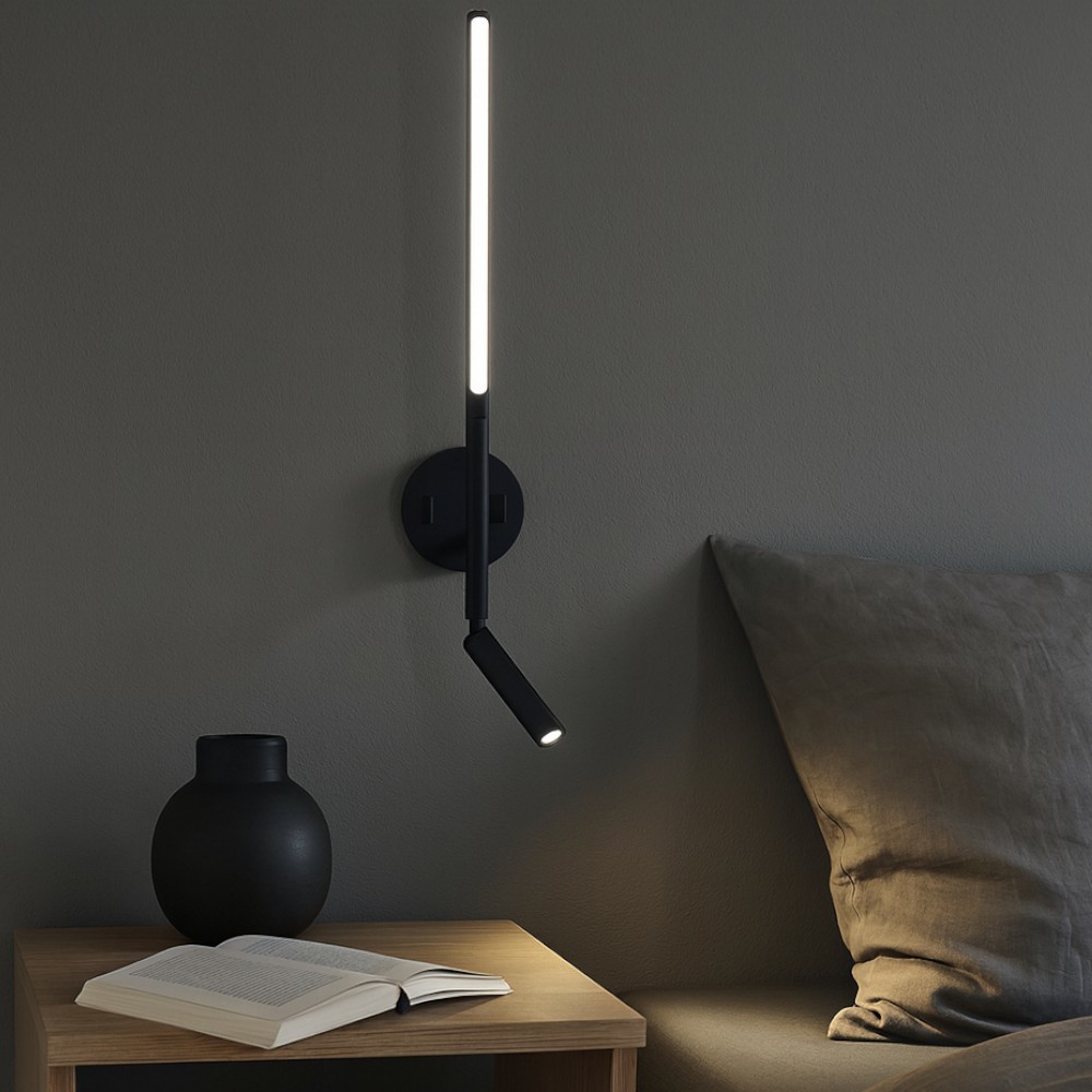 Applique per comodino camera da letto led nera sx ondaluce ap flat presa usb