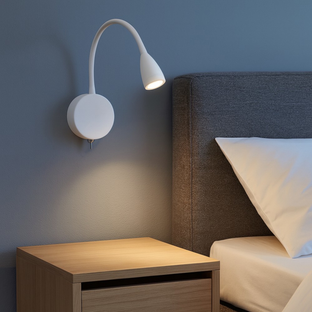 Applique per comodino camera da letto bianca con presa usb base ricarica