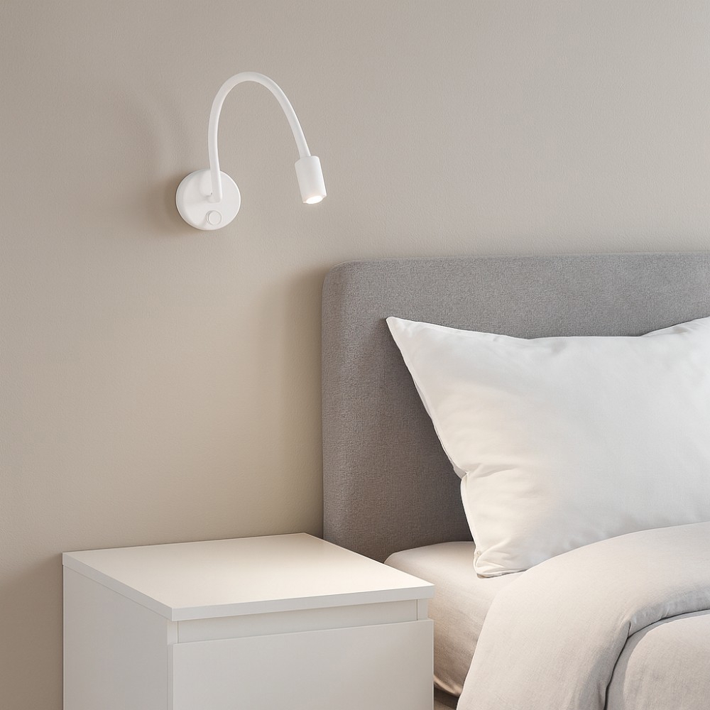 Applique bianco comodino orientabile per camera da letto led 3w 3000k