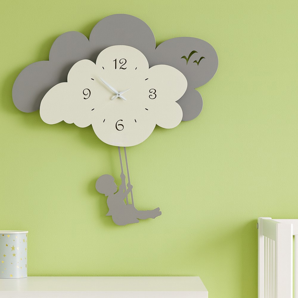 Questo orologio da parete è un complemento d’arredo originale e delicato, perfetto per aggiungere un tocco di fantasia a qualsiasi ambiente. Con la sua simpatica forma a nuvola e il bambino sull’altalena pendolo, porta leggerezza e movimento in camerette, soggiorni o ingressi. Realizzato in metallo con taglio laser, si distingue per i colori fango e avorio che si adattano facilmente a diversi stili d’arredo. Questo orologio da parete per cucina o cameretta coniuga artigianalità e funzionalità, grazie a numeri ben visibili, lancette chiare e un meccanismo a pendolo che anima la scena con grazia.