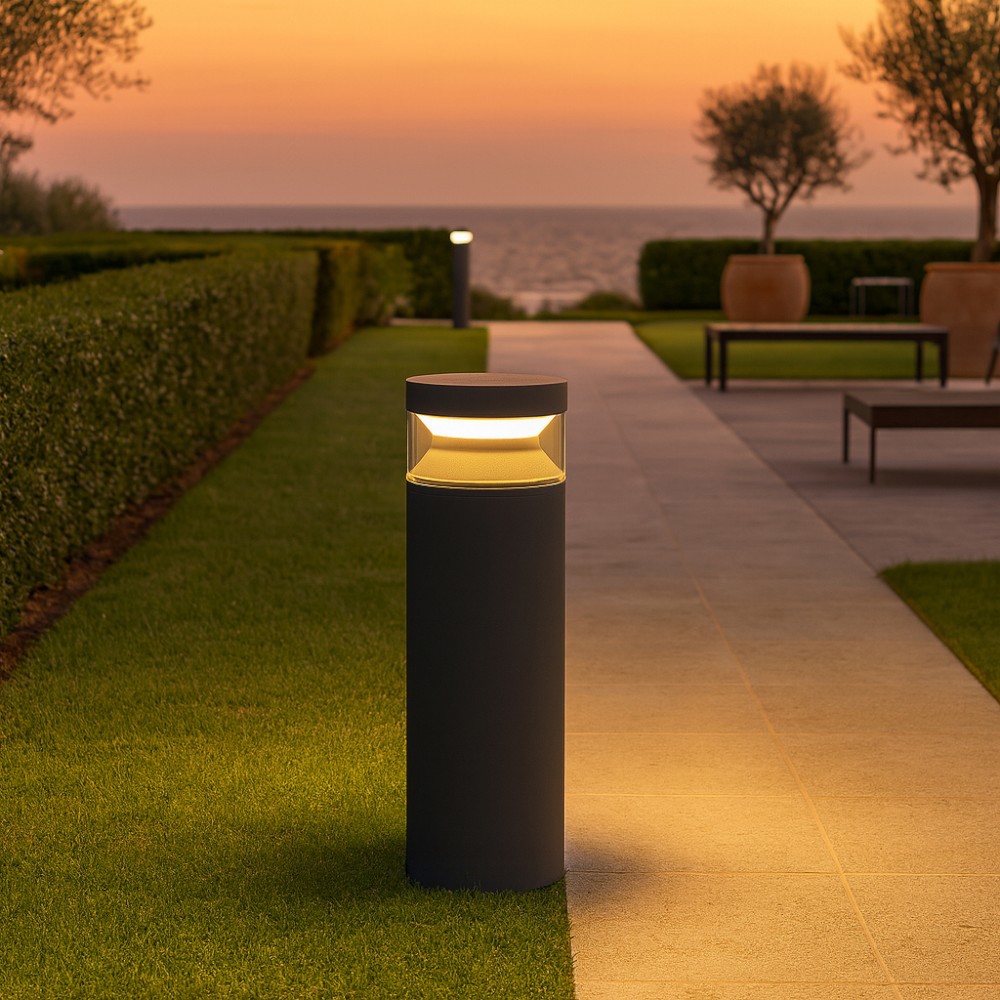Lampione da giardinoantracite moderno effetto legno led 11w 3000k