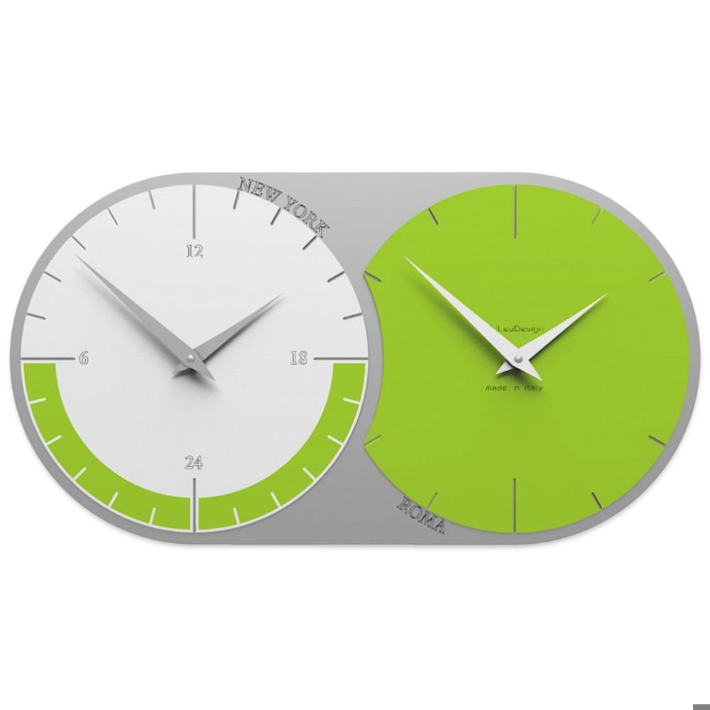 Orologio da parete moderno fusi orari 2 grigio quarzo bianco