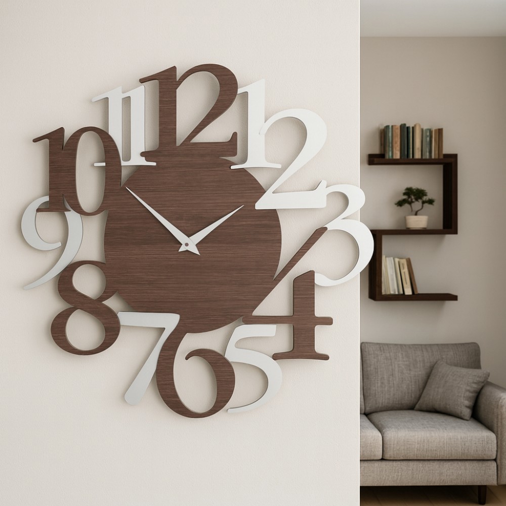 Orologio da parete moderno rubino e grigio in legno taglio laser