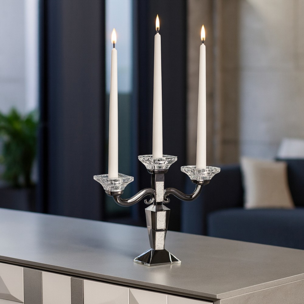 Candelabro vetro cristallo tre fiamme da tavola fp