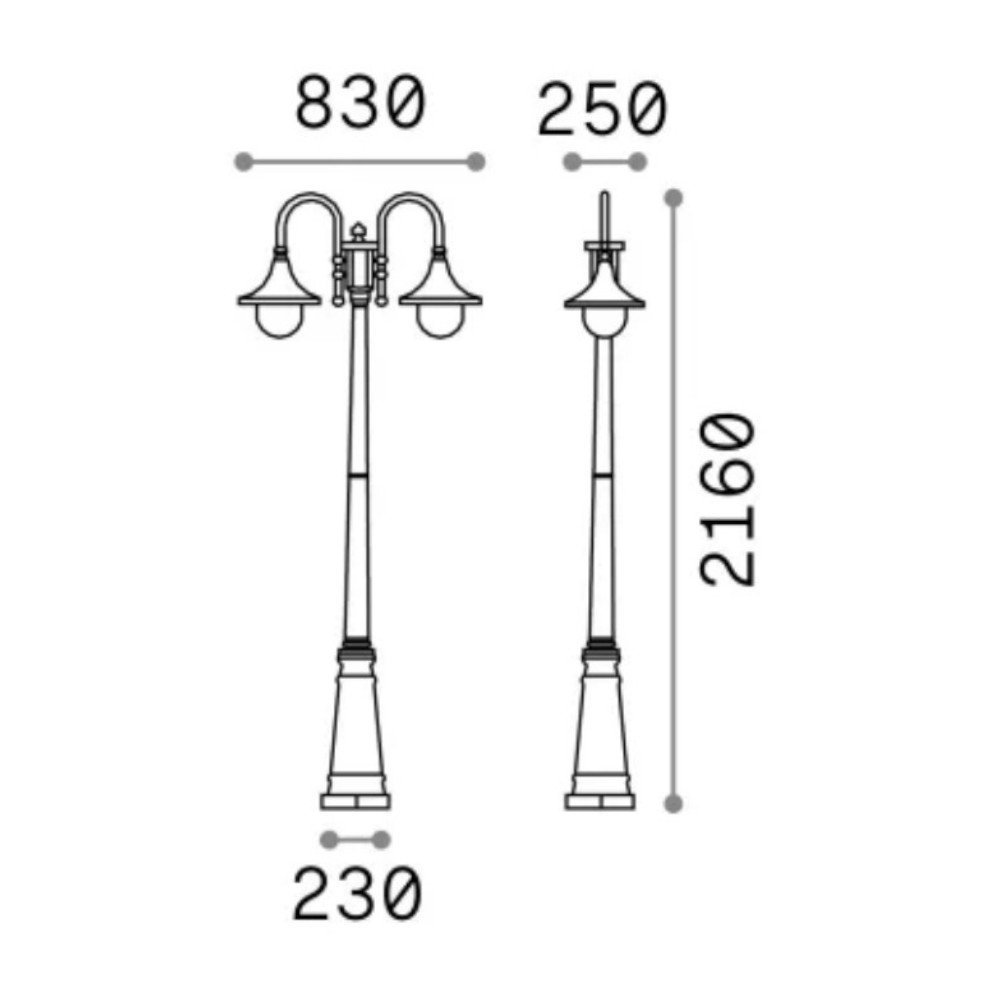 Cima pt2 lampione classico alto due luci da giardino ip43 ideal lux