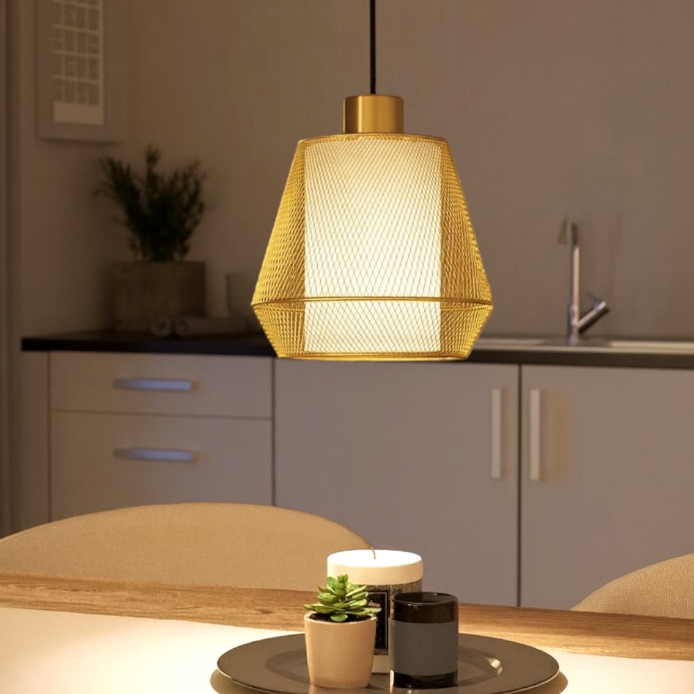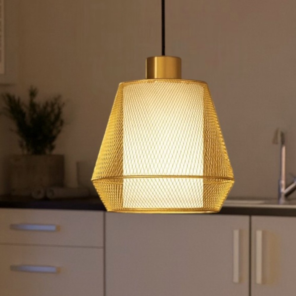 Lampada a sospensione per camera da letto con dettagli colore oro