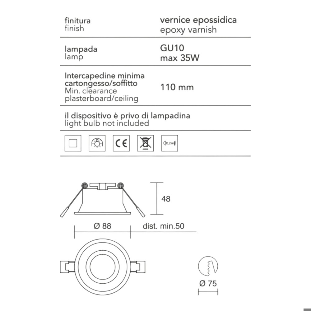 Faretto rotondo da incasso per cartongesso metallo bianco gu10 isyluce <disp dal 2024>