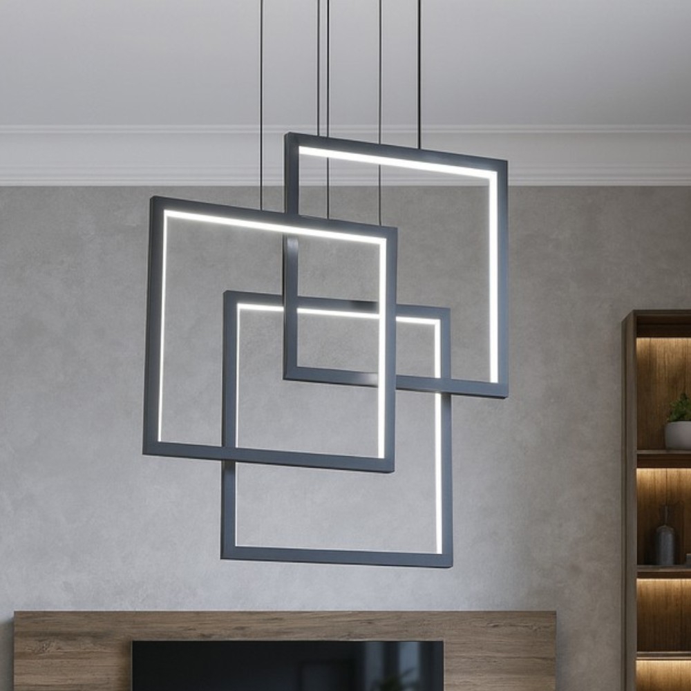 Lampadario design moderno grigio led 40w 3000k per soggiorno