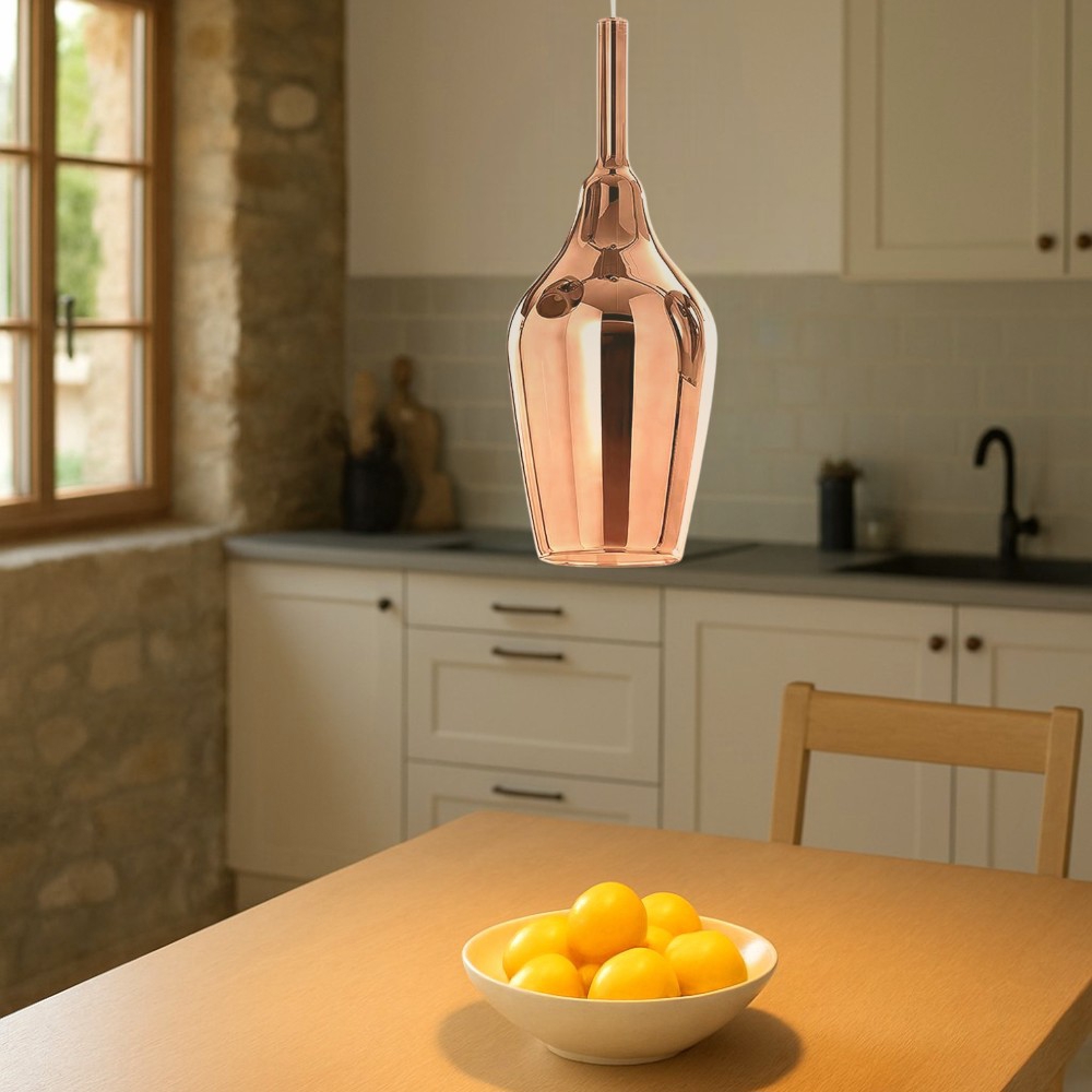 Lampada a sospensione per isola cucina boccia vetro ambra