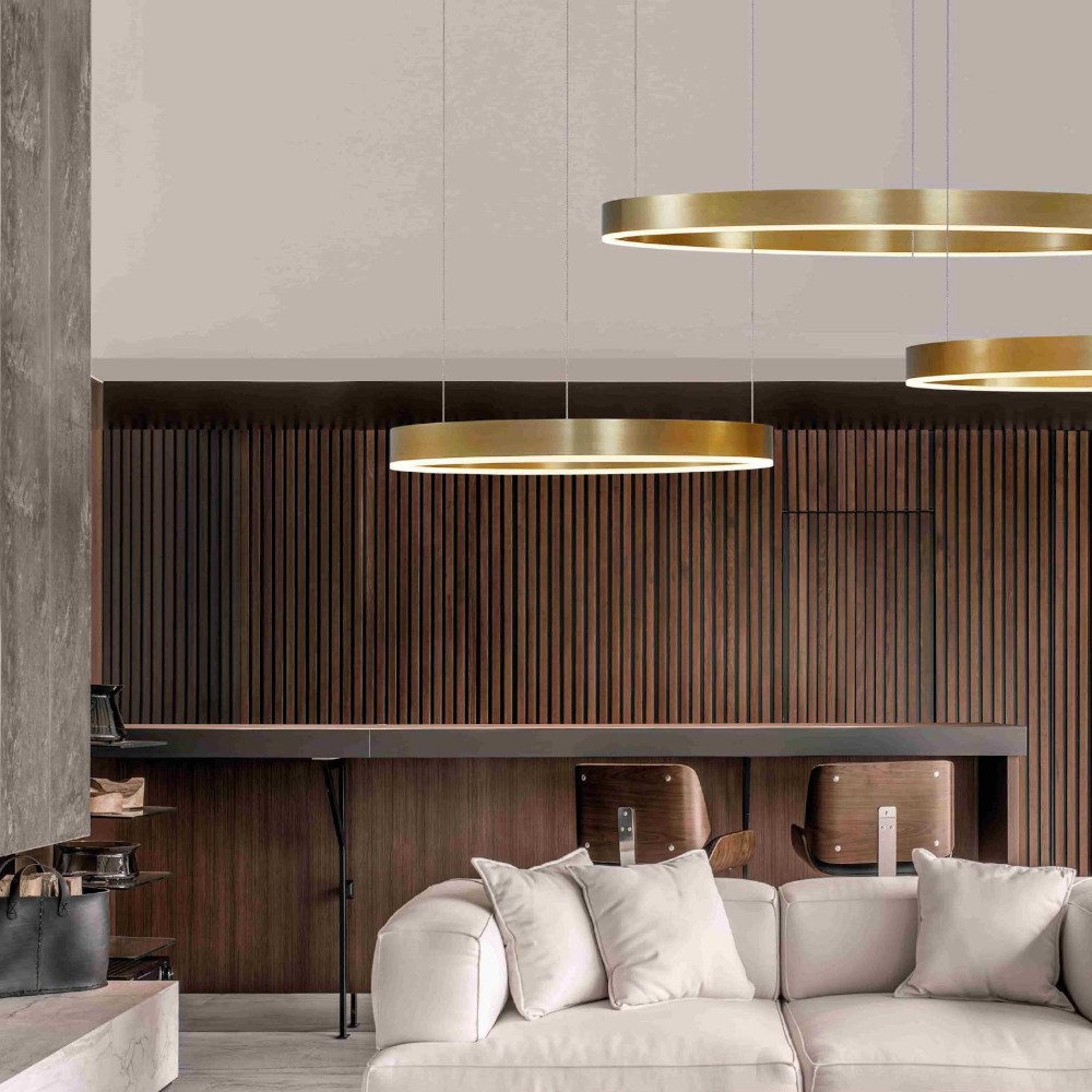 Lampadario moderno 3 anelli oro led 140w 2700k a 6000k