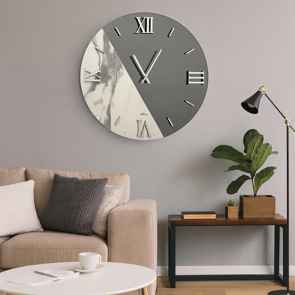Orologio da muro moderno specchio fume marmo laminato rotondo 80cm