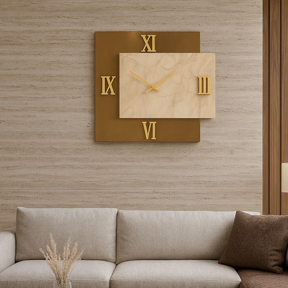 Orologio da parete moderno design specchio marmo laminato 80x90cm