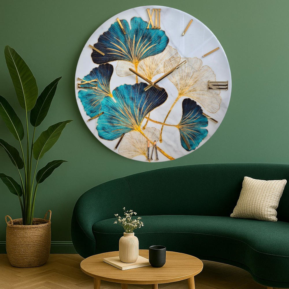 Orologio da parete 60cm di resina floreal particolare verde oro