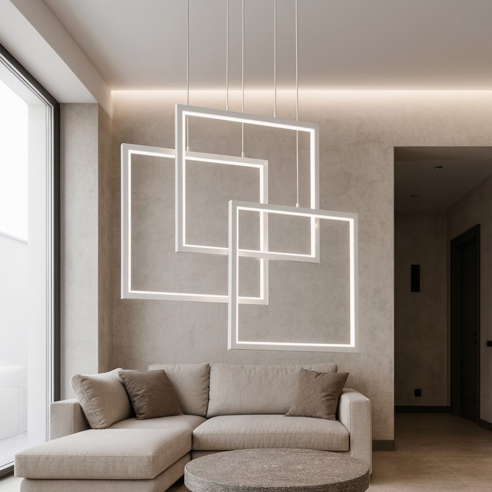 Ideal lux frame lampadario bianco design moderno led 82w 3000k