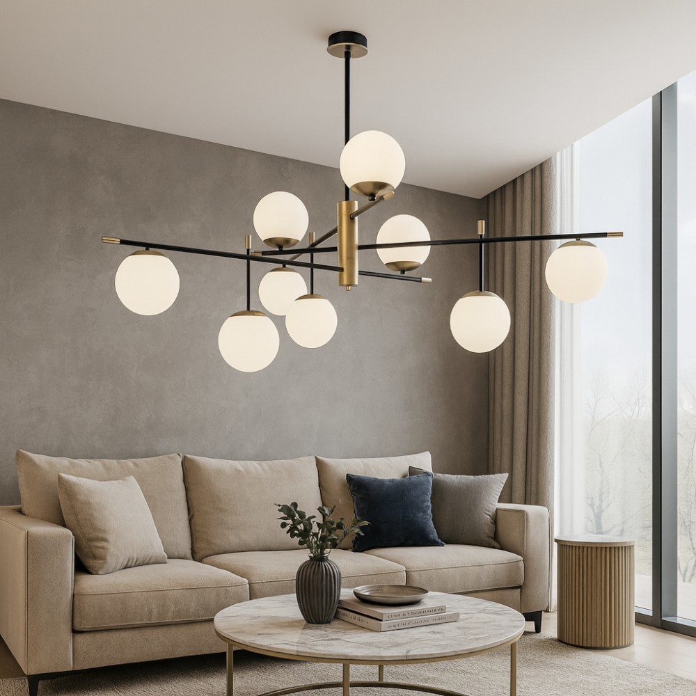 Lampadario design moderno so gizah ondaluce oro sfere bianche