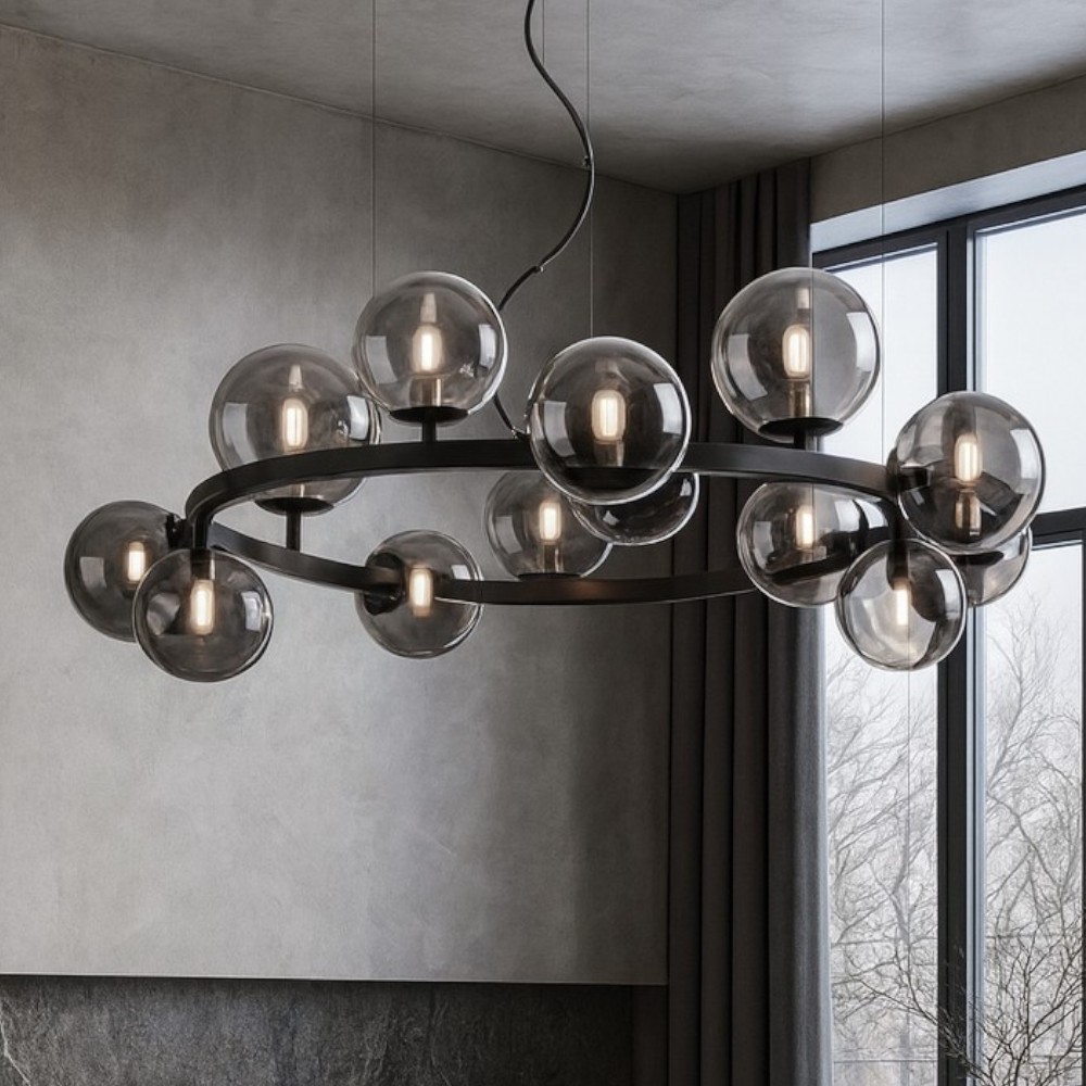 Ideal lux perlage sp30 lampadario nero particolare per soggiorno moderno