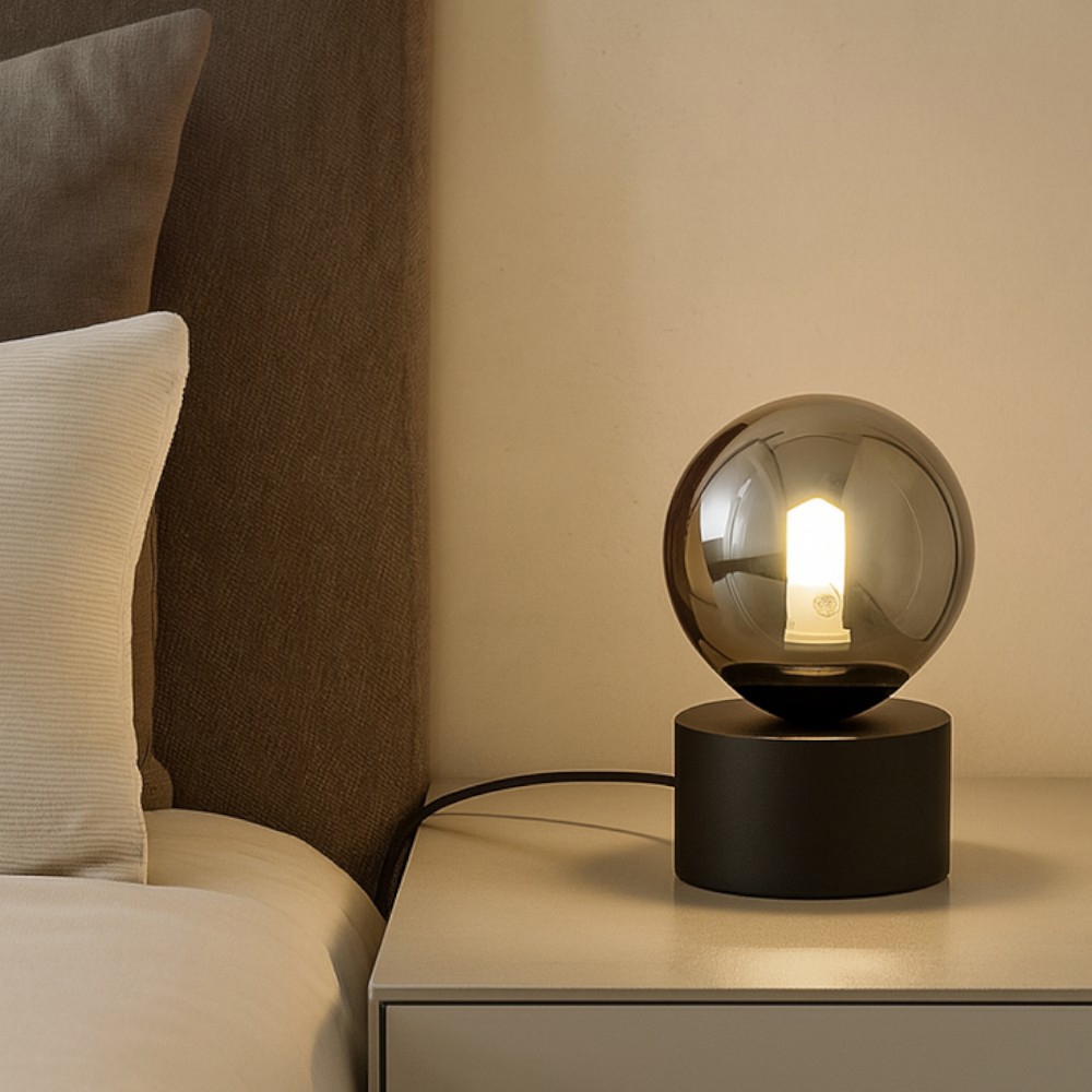 Ideal lux perlage tl3 lampada da tavolo tre luci sfere fume' metallo nero