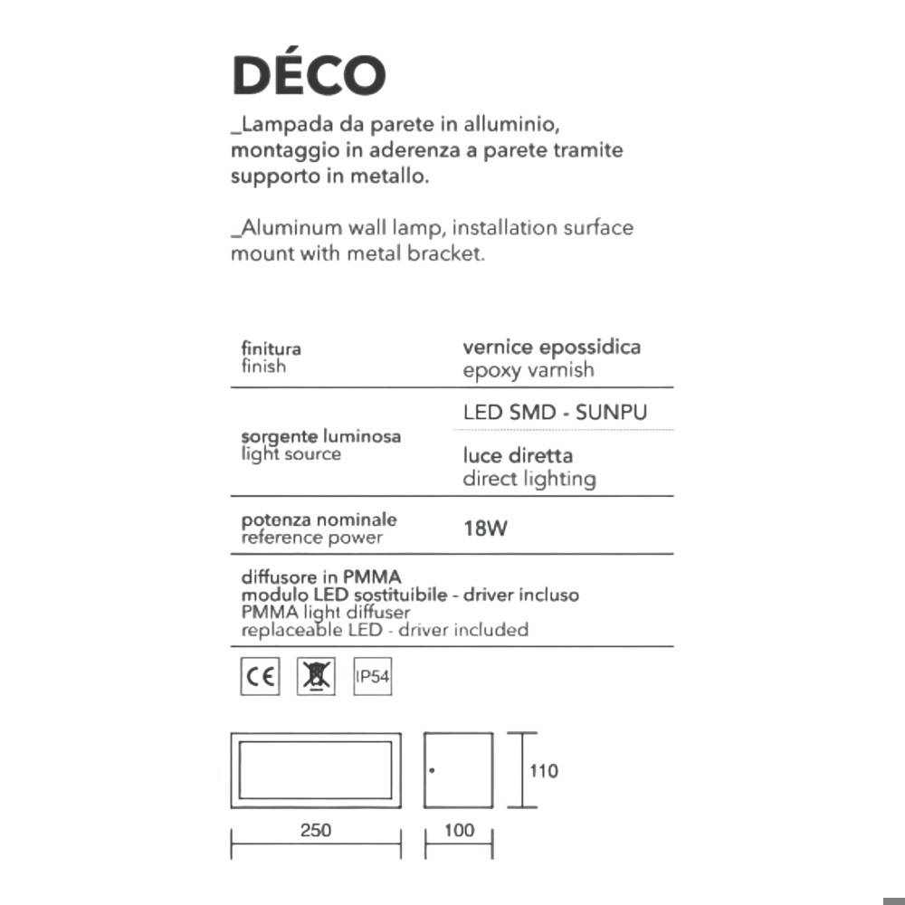 L'Applique Deco di Isyluce rappresenta una soluzione raffinata per l'illuminazione esterna, ideale per valorizzare balconi, terrazzi o ingressi grazie alla luce diffusa sopra-sotto-frontale che dona un’atmosfera calda e funzionale. La struttura rettangolare in alluminio pressofuso, abbinata a un diffusore in metacrilato opalino, consente una distribuzione omogenea e anche mirata della luce. Questa applique a luce calda generata da applique per l’esterno è equipaggiata con un LED SMD da 18W a 3000K, assicurando prestazioni affidabili e durature. Certificata CE e con grado di protezione IP54, resiste perfettamente a polvere e umidità, risultando ideale per l’uso in ambienti outdoor. L’installazione è semplice e immediata, grazie ai tasselli già forniti nella confezione.