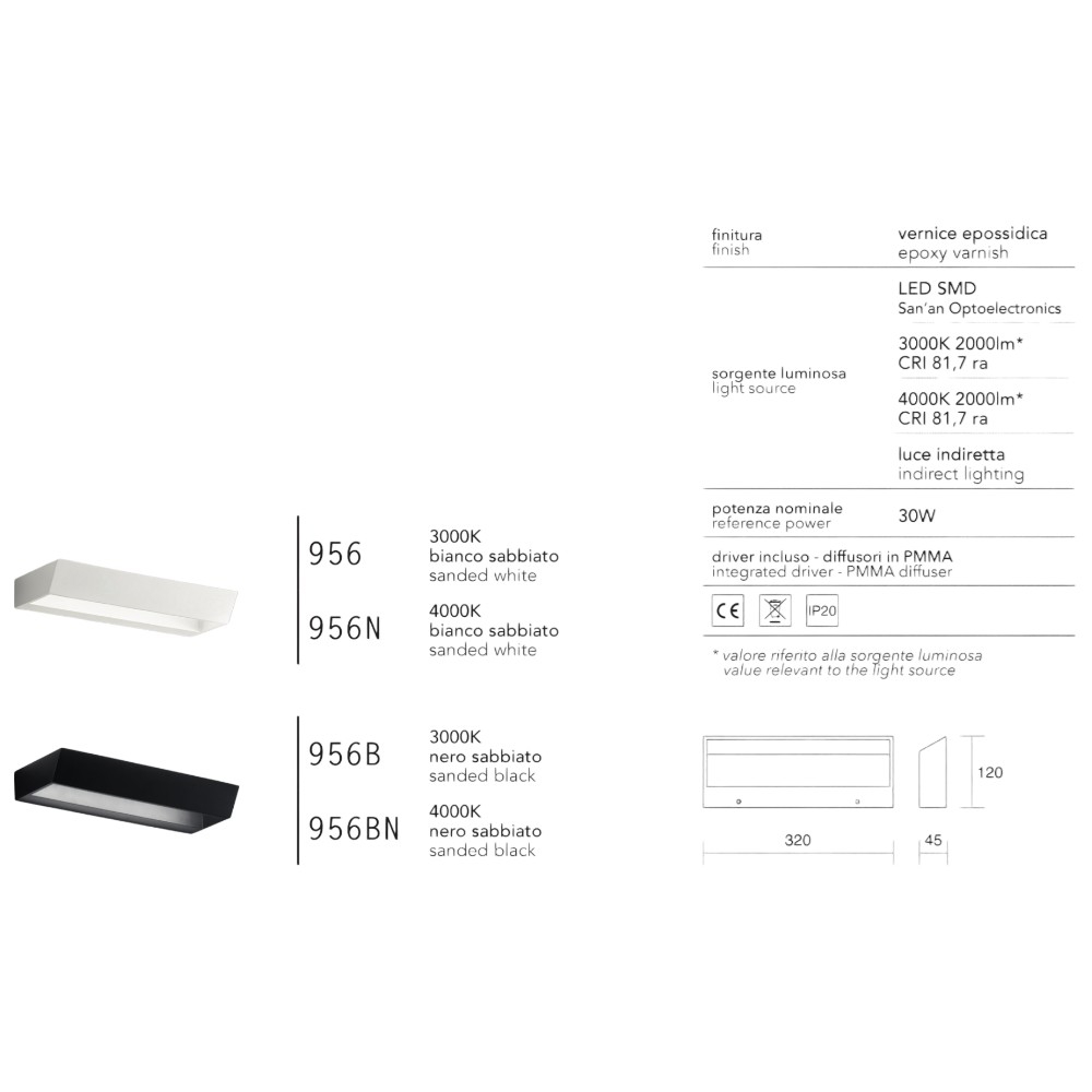 Gea luce enila applique da parete led 20w 3000k bianco sottile