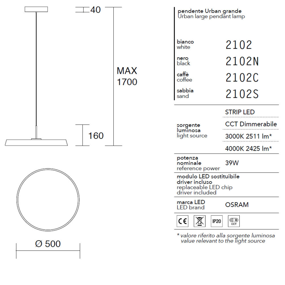 - LUMEN NOMINALI SORGENTE: 2511 LM / 2425 LM