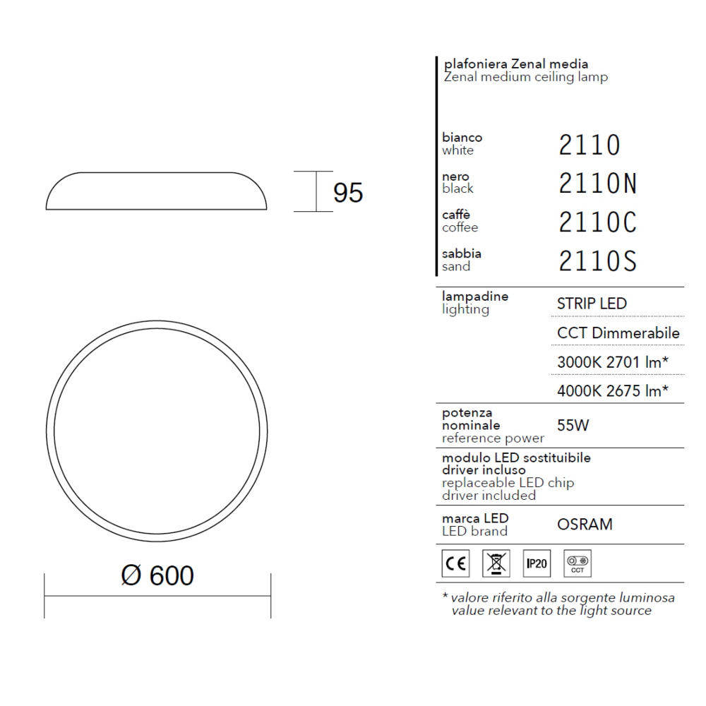 Isyluce zenal plafoniera sabbia rotonda led 55w 3000k 4000k dimmerabile