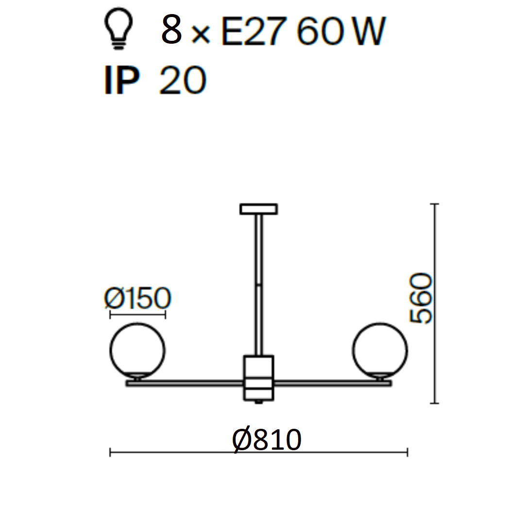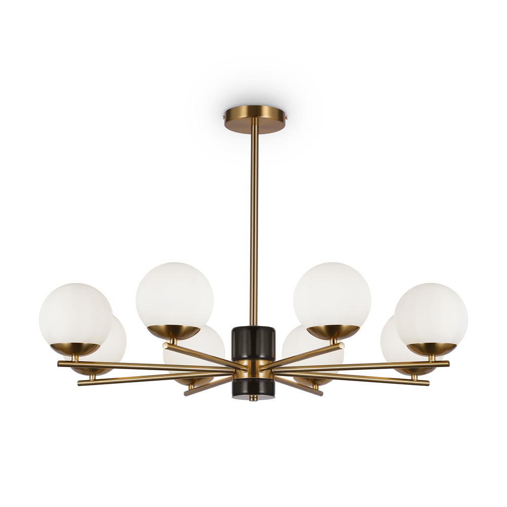 Lampadario moderno per soggiorno colore oro 6 luci sferiche vetro bianco