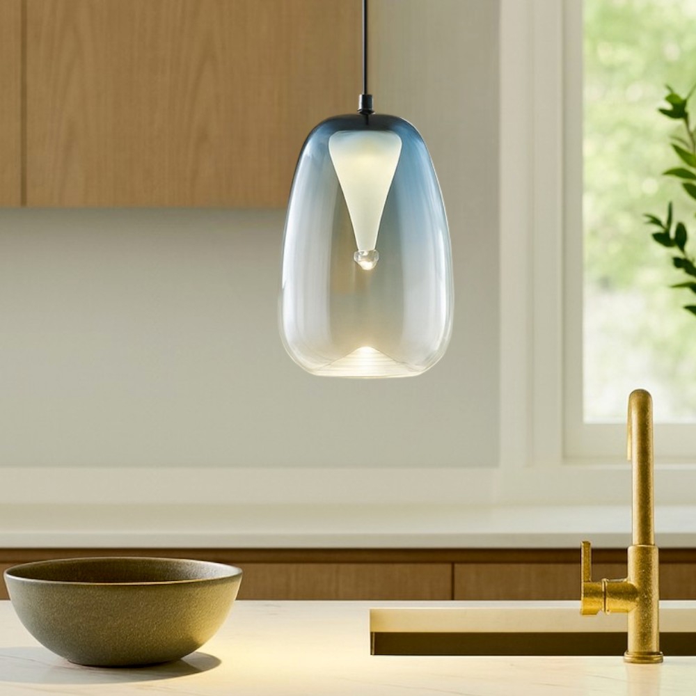 Lampada a sospensione da cucina con paralume in vetro ambrato led 3000k