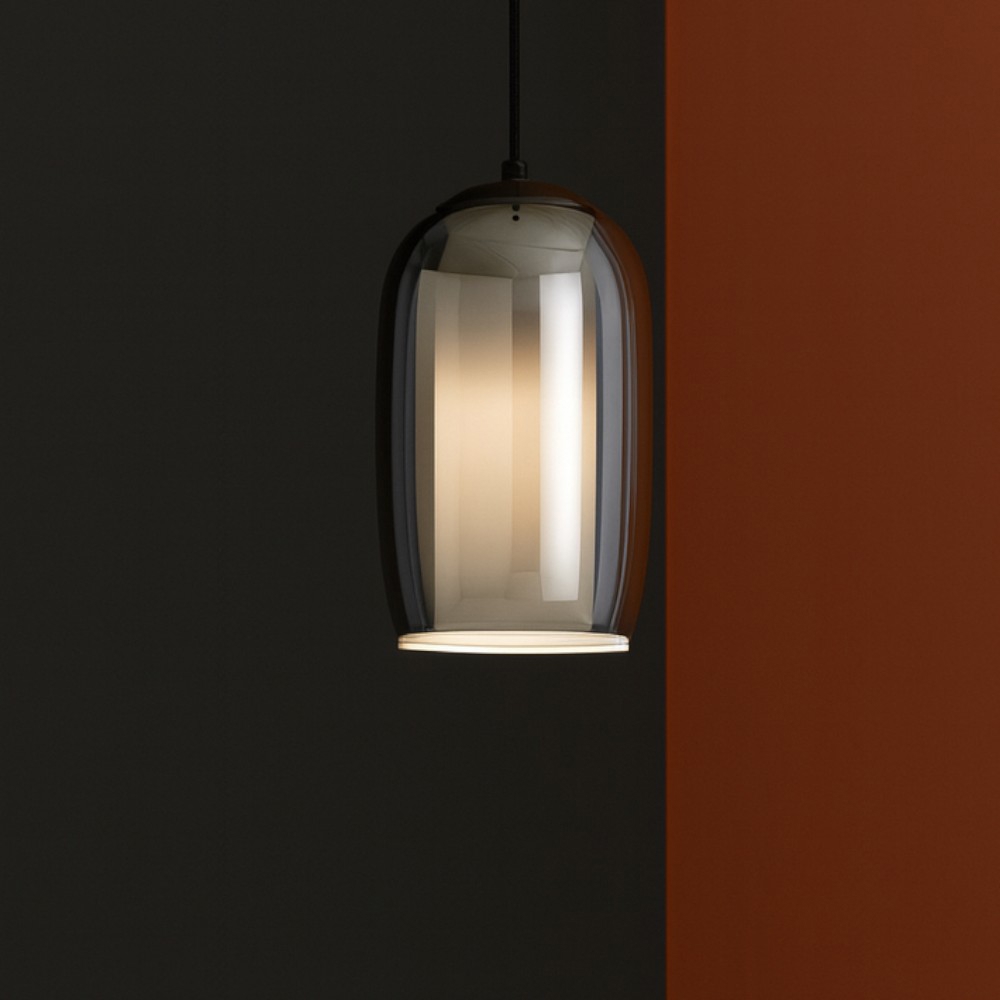 Lampada a sospensione so bonnie1 vetro fume base nero ondaluce