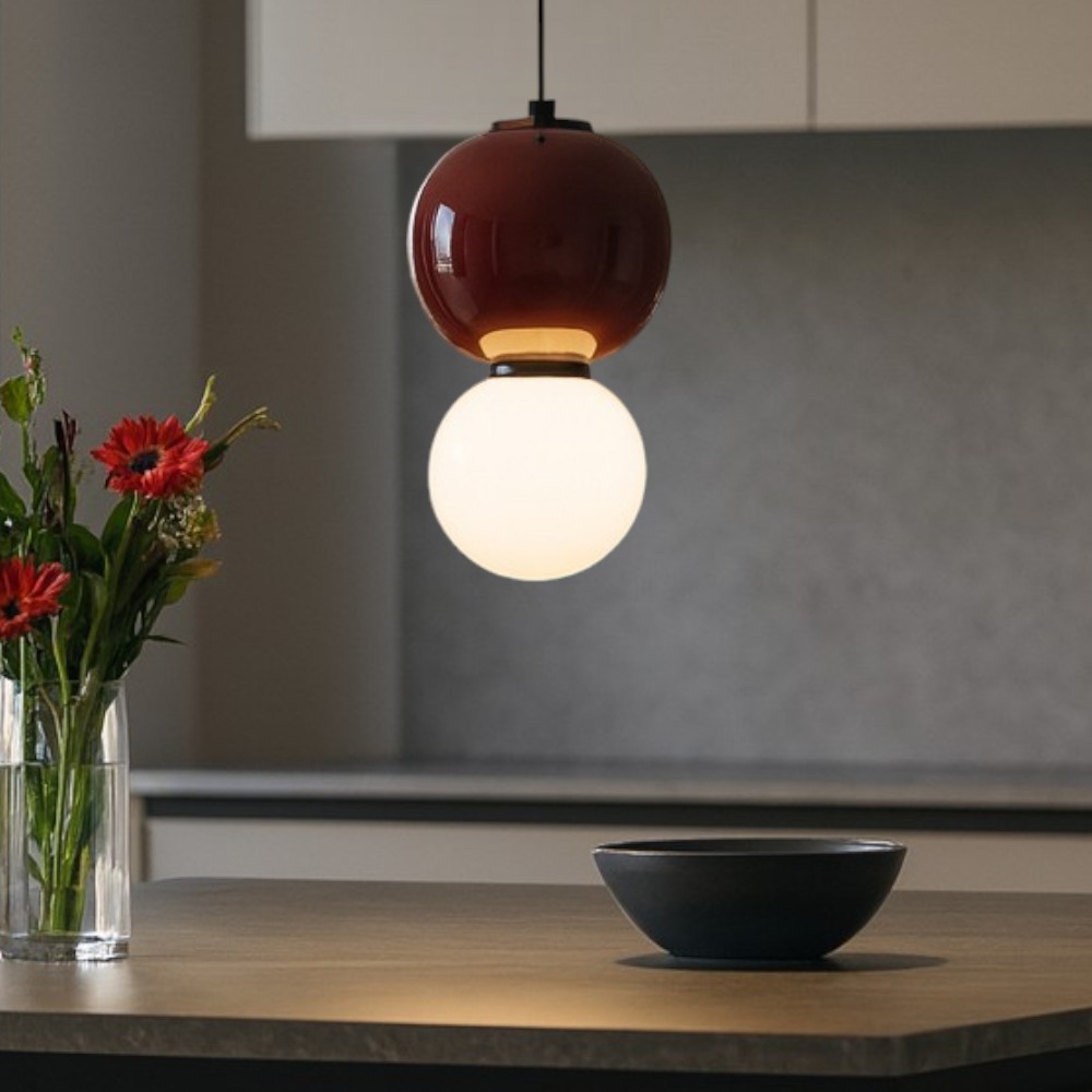 Lampada a sospensione da cucina moderna bordeaux diametro 25cm led 3000k