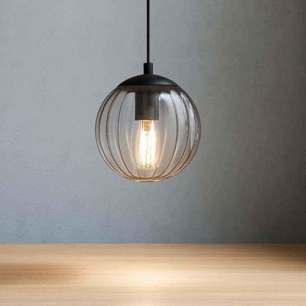 Lampadario da cucina con 3 sfere pendenti in vetro fume'