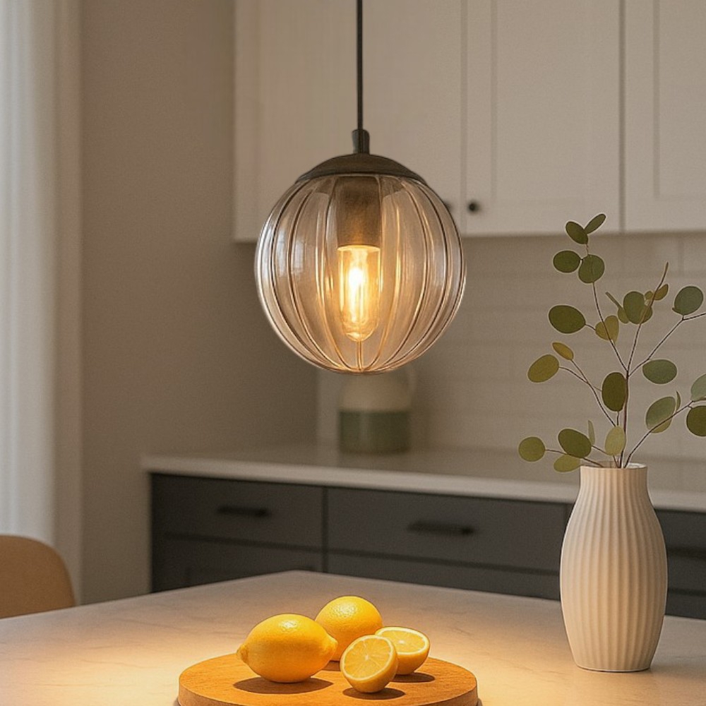 Lampada a sospensione per isola cucina in vetro fume' led 3000k